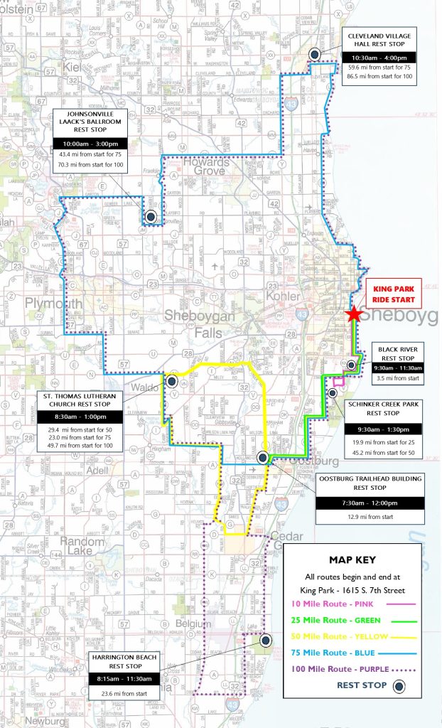 Routes Detailed Route Maps Routes may change due to construction. Please check back in May for the latest route updates. 10 Mile Route 25 Mile Route 50 Mile Route 75 Mile Route 100 Mile Route THANK YOU TO OUR GENEROUS 2025 SPONSORS Michael & Nichola Stayer-Suprick * Anne Woepse-Edward JonesGary & Nancy Buss * Lonnie & Cathy Proveaux * Rockline Industries